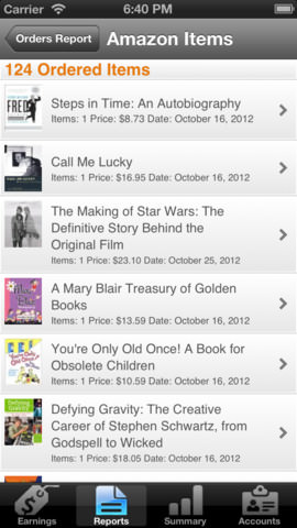 もちろん日本のAmazonアフィリエイトプログラムにも対応していて注文された商品のチェック、クリック数、成果報酬の金額などなどチェックすることができます。同じAmazonアフィリエイト用のアプリAmReport -アソシエイトレポート (¥350)