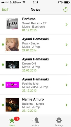 たとえば安室奈美恵やPerfumeのリリース情報をいち速くキャッチしたいならアーティストを検索して購読してください。